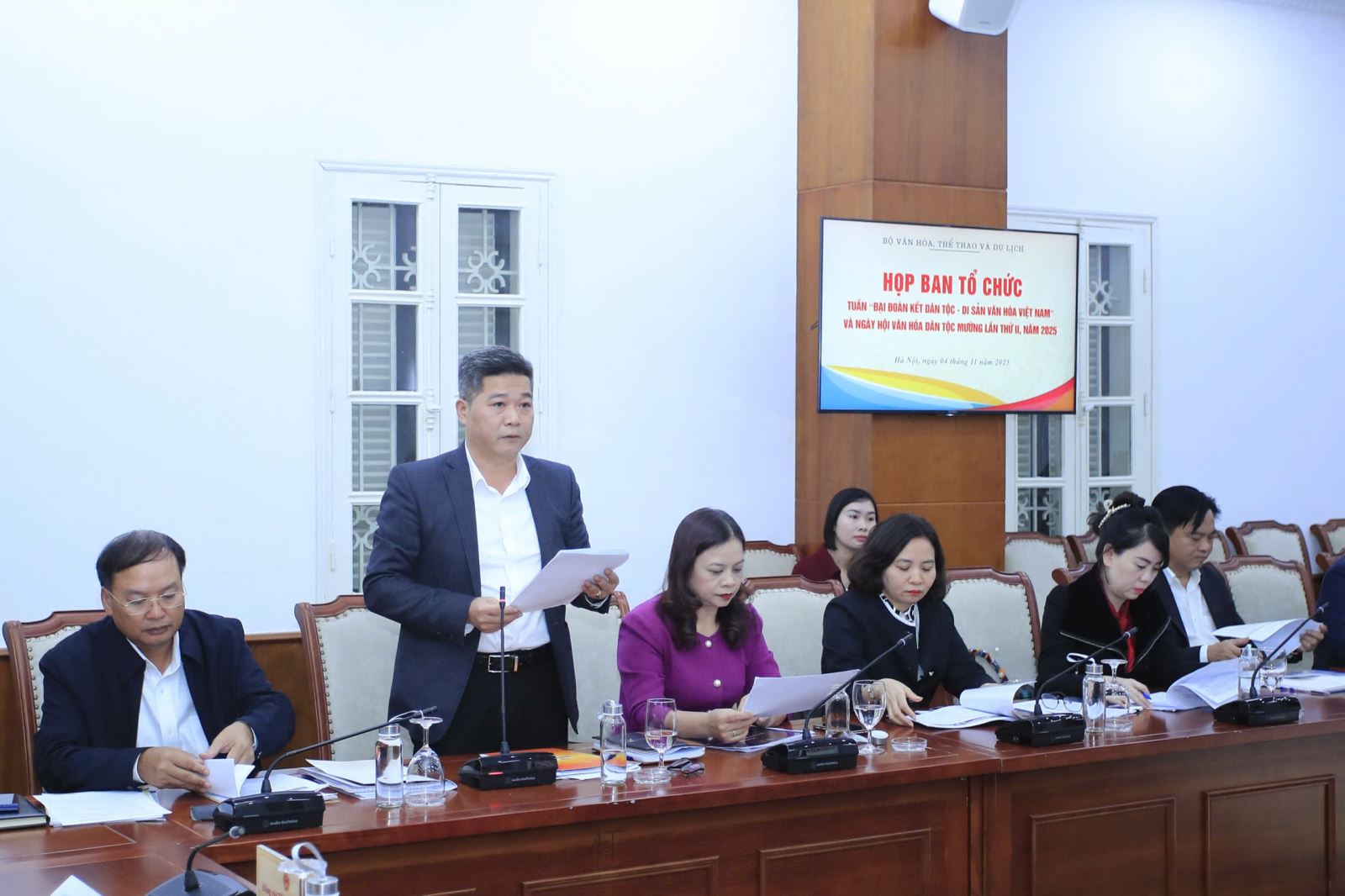 Tại buổi làm việc, ông Trần Mạnh Hùng, Phó Cục trưởng Cục Văn hóa các dân tộc Việt Nam (Bộ VHTTDL) đã báo cáo về tiến độ chuẩn bị tổ chức các sự kiện. Theo đó, Tuần “Đại đoàn kết các dân tộc - Di sản Văn hóa Việt Nam” và “Ngày hội văn hóa dân tộc Mường lần thứ II năm 2025” diễn ra từ ngày 18 đến 23-11 tại Làng Văn hóa - Du lịch các dân tộc Việt Nam gồm nhiều hoạt động nổi bật, ý nghĩa nhằm chào mừng Ngày Di sản Văn hóa Việt Nam (23-11) tại Sân lễ hội làng dân tộc Ê Đê, Khu các làng dân tộc II (ngày 18-11). Ngày 21-11 sẽ khai mạc “Ngày hội văn hóa dân tộc Mường lần thứ II năm 2025”. Sáng cùng ngày sẽ có Hội thảo khoa học “Bảo tồn, phát huy giá trị văn hóa truyền thống các dân tộc thiểu số gắn với phát triển du lịch”.