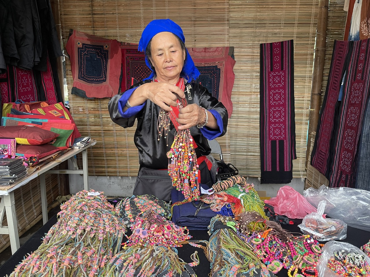 Những chiếc vòng tay, vòng cổ hay dây đeo kính được tạo nên từ sự kết hợp giữa thổ cẩm truyền thống và hạt cườm hiện đại, tuy nhỏ bé về hình thức nhưng hàm chứa giá trị văn hóa. Chính vì vậy, các sản phẩm này được thế hệ trẻ người Mông đón nhận, đặc biệt ưa chuộng trong những dịp lễ tết như một cách thể hiện bản sắc. Những phụ kiện tưởng chừng giản dị ấy không chỉ làm đẹp cho người sử dụng, mà còn trở thành phương tiện lan tỏa văn hóa, đồng thời, tạo thu nhập cho người dân vùng cao.