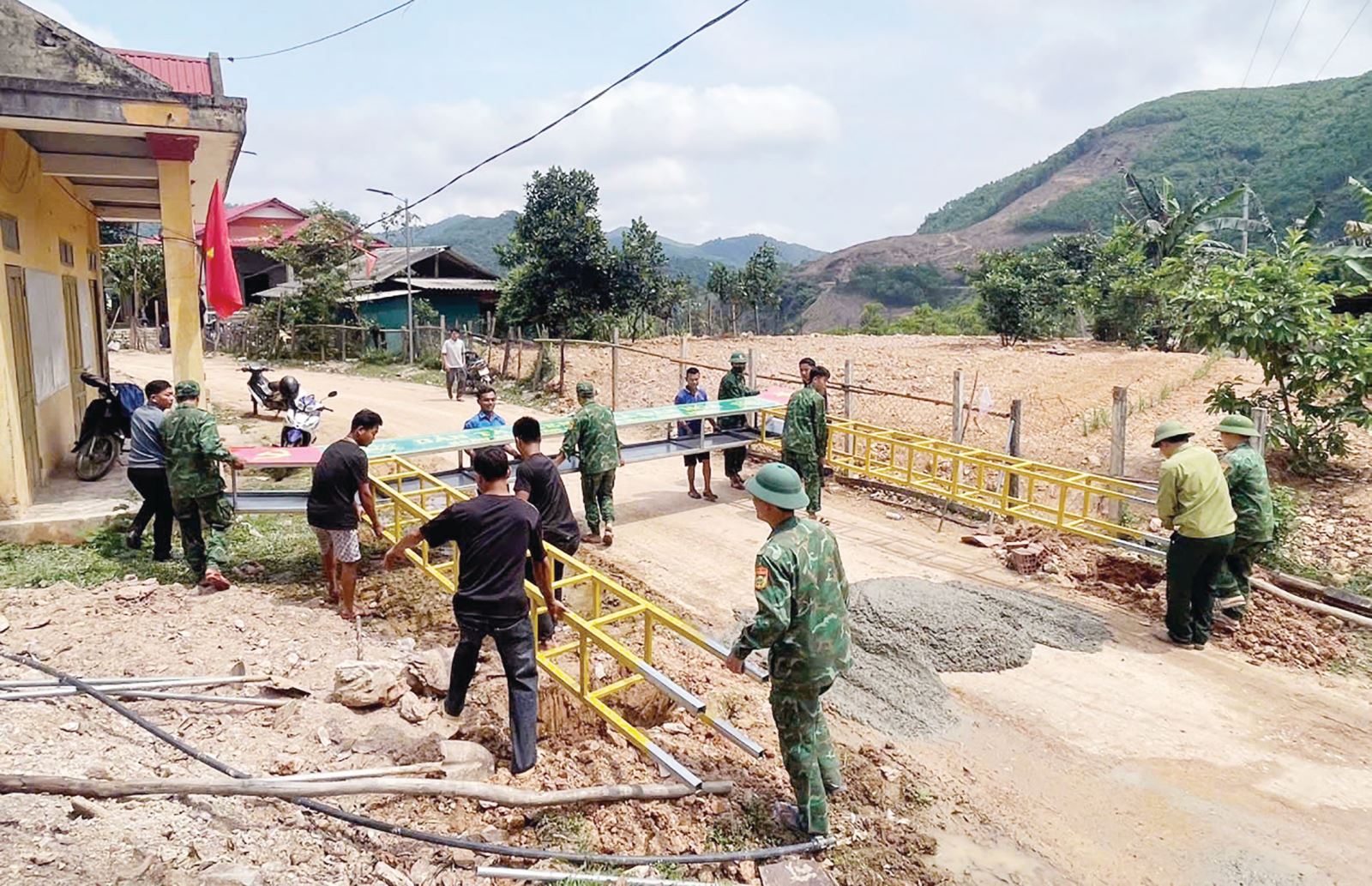 Bộ đội Biên phòng Cha Lo cùng người dân bản Y Leng dựng cổng chào